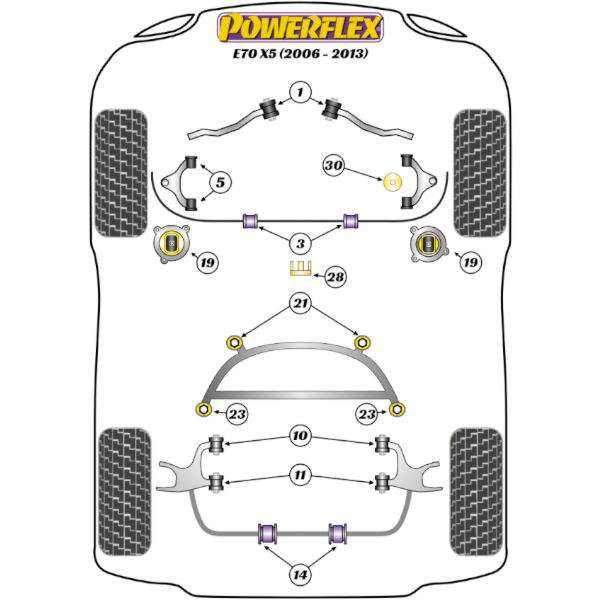 Mobile Preview: Powerflex Buchsen Stabilisator vorne an Fahrgestell für BMW E70 X5 (2006-2013)