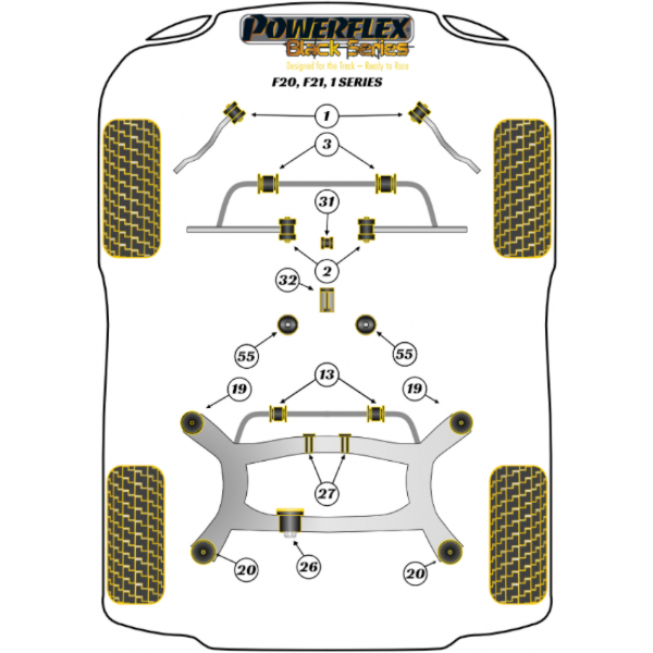 Powerflex Buchsen hinterer Hilfsrahmen Hülseneinsatz vorne für BMW F20, F21 (2011-2019) Black Series