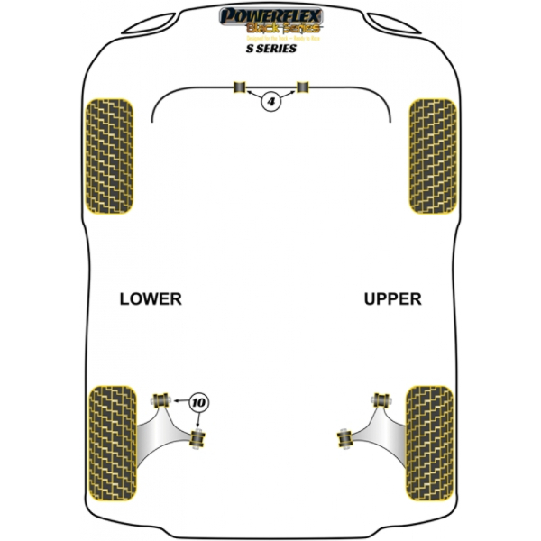 Powerflex Black Series - PU bushings for Motorsports and Street you get a low price in the store to buy Powerflex Germany. The Powerflex bushes are harder and firmer than the standard chassis connectors. With proper installation the jacks normally need never be replaced again, because hardly any wear. The manufacturer Powerflex of England provides cheap Polyurethane bushings, engine mounts, transmission mounts, exhaust mounts, spring travel and universal sockets for TVR S Series (1986-1994) for sale.